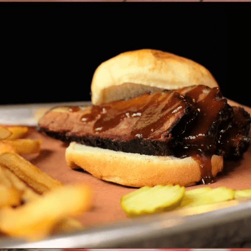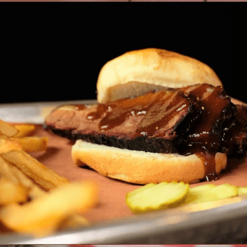 Our classic chopped brisket sandwich, served with a side and drink